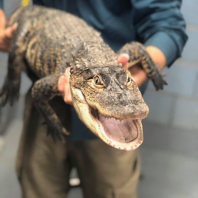 The alligator, which somehow ended up in Chicago's Humboldt Park, was captured by Animal Care and Control after a nea...